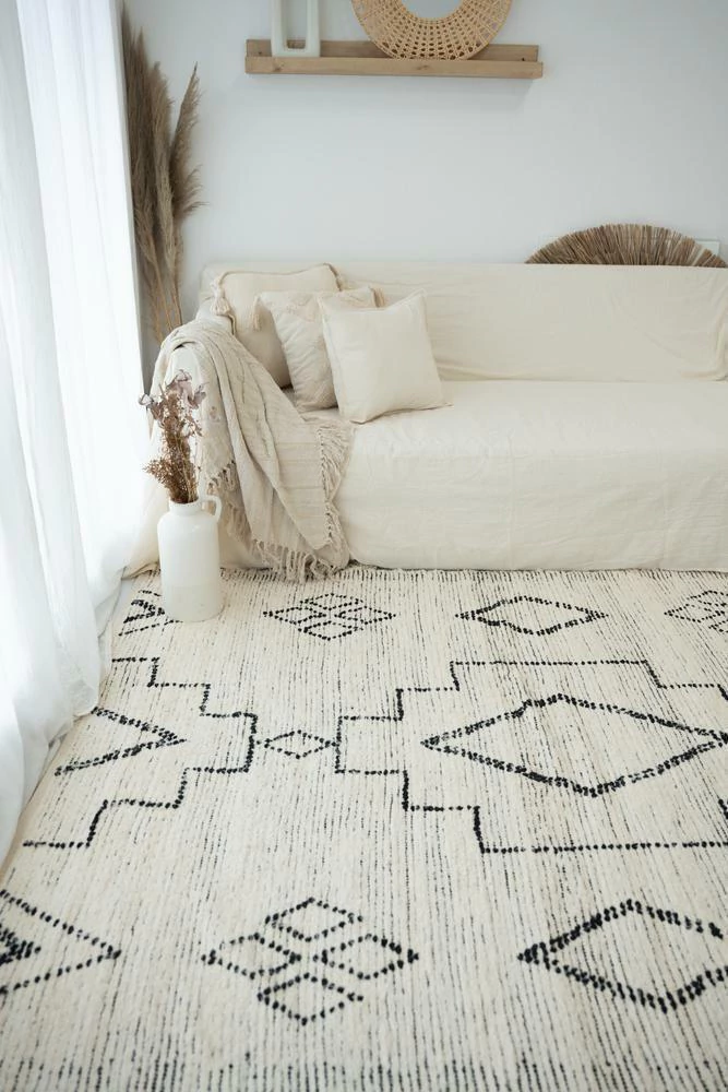 Decora tus espacios con la Alfombra Umaria, una pieza llena de carácter y estilo. Su confección en algodón y sus diseños únicos la hacen ideal para crear ambientes cálidos y acogedores con un toque boho chic.