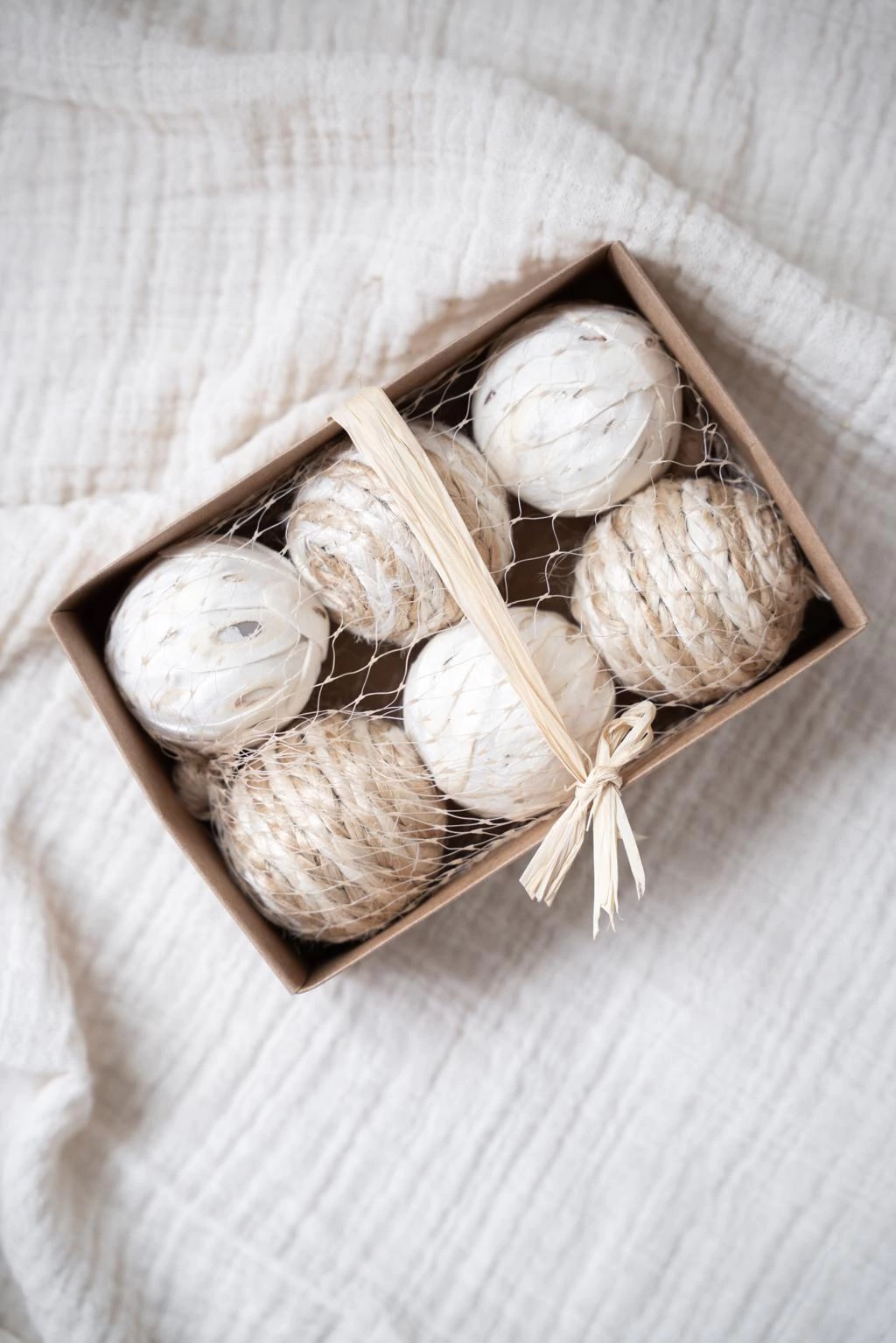 Cada set incluye 6 borlas de 6cm cada una: Perfectas para combinar y crear arreglos únicos. Vienen presentadas en una caja de cartón de 18x12x6 cm y embaladas en una red, ideal para regalar o almacenar.