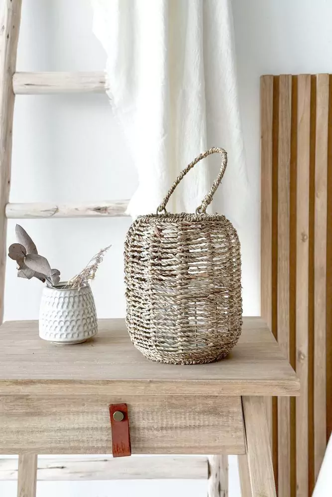 Ilumina tus espacios con un toque costero y natural. Nuestro fanal Surpan, realizado artesanalmente con seagrass, con su portavela de vidrio incluido, creará un ambiente cálido y acogedor en cualquier rincón de tu hogar.