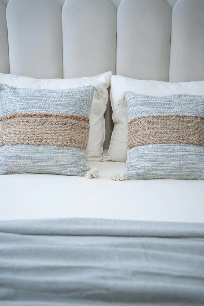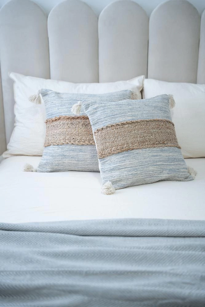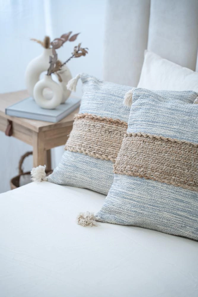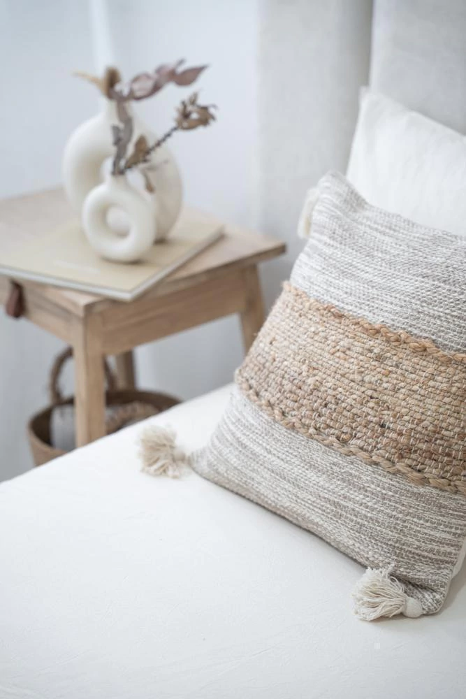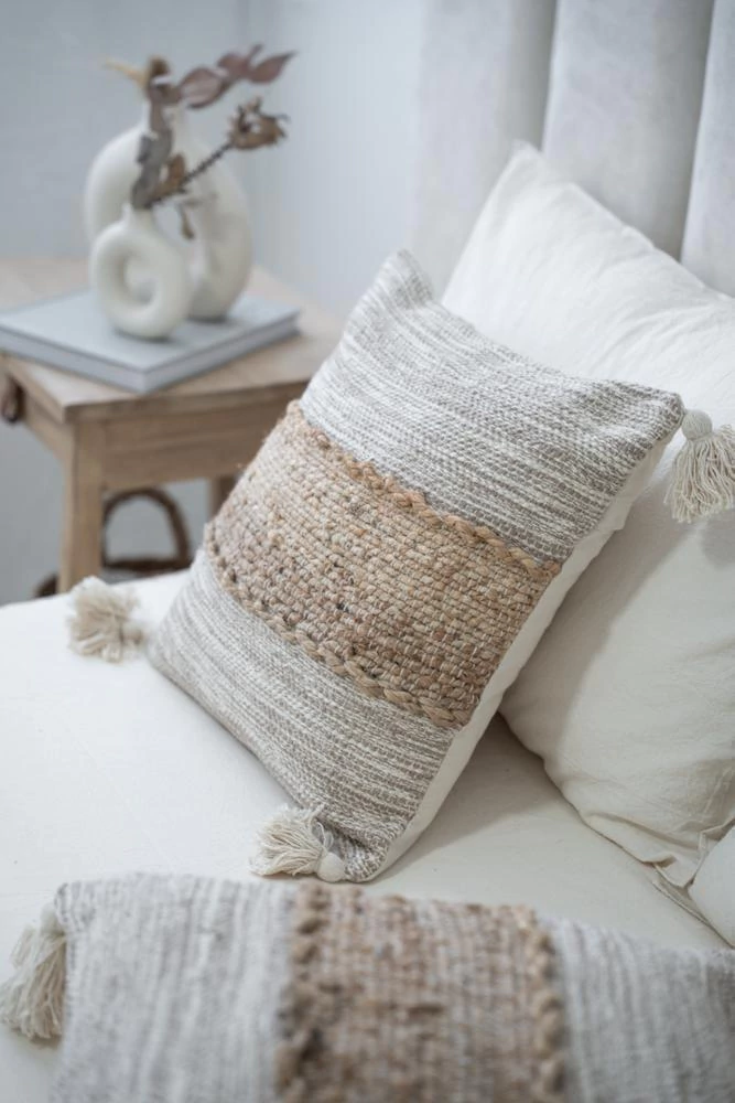 Nuestra Funda para Almohadon TAPI está confeccionada artesanalmente en 100% algodón natural, importada directamente de la India, cuna de las técnicas textiles más antiguas del mundo. Su diseño rústico en tonos neutros combina con cualquier estilo de decoración: boho, minimalista, nórdico o clásico.