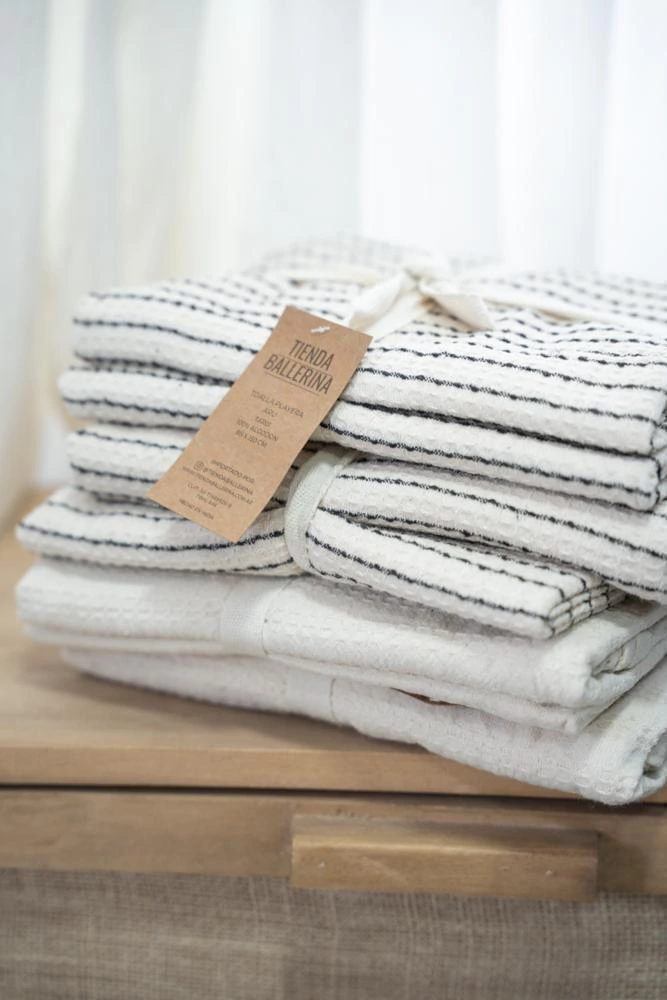 Nuestra Toalla Playera NANDI está confeccionada artesanalmente en 100% algodón natural, importada directamente de la India, cuna de las técnicas textiles más antiguas del mundo. Su diseño rústico en tonos neutros combina con cualquier estilo de decoración: boho, minimalista, nórdico o clásico.